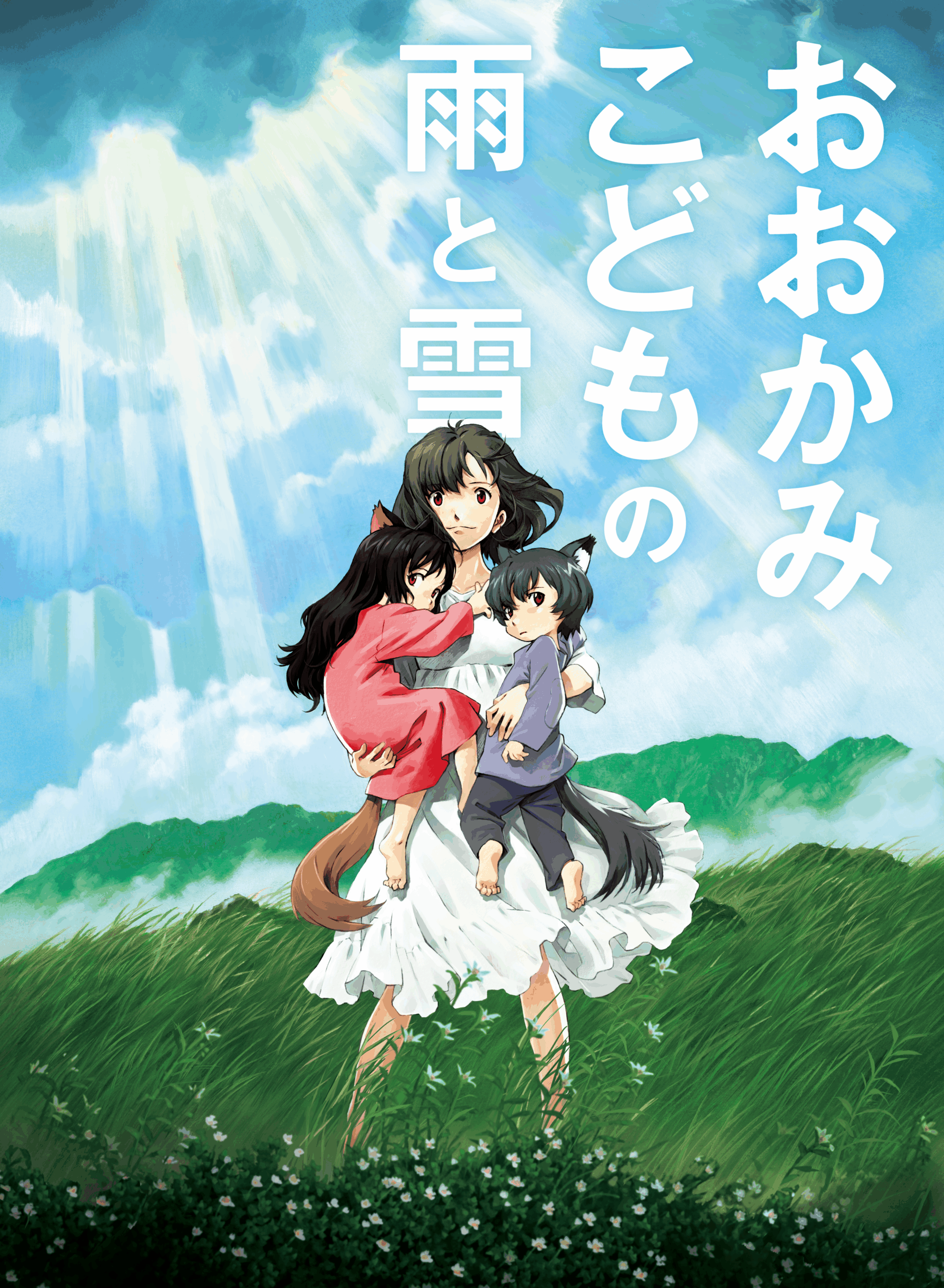 “おおかみおとこ”と恋に落ちた“花”は、“雨”と“雪”という2人の“おおかみこども”を授かるが、彼は帰らぬ人に。